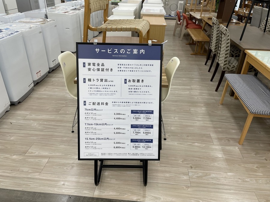 配送エリア、トラック貸し出し時間など
