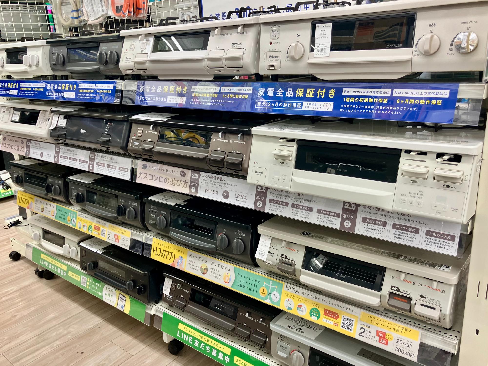 ガステーブルや照明器具など幅広く店頭で展開しております!