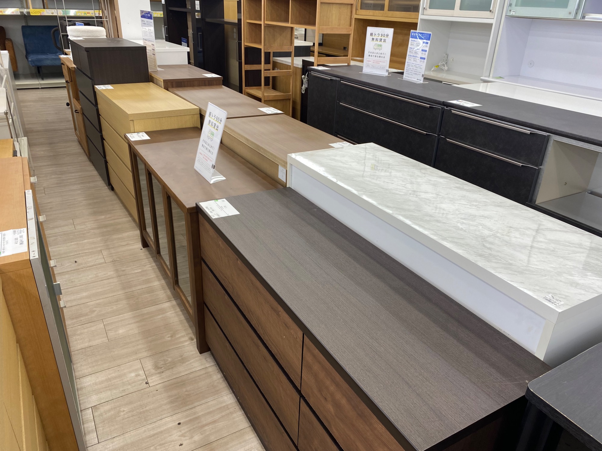 当店では家具の配送はもちろん、軽トラック90分無料貸出など