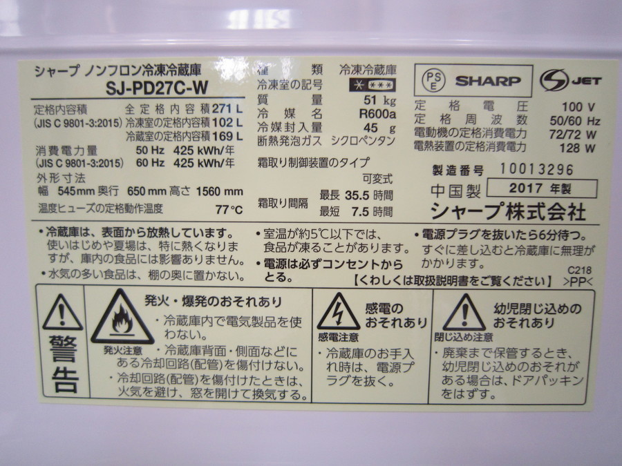 大宮店 店舗TOP 店内紹介 新入荷ブログ 地図・アクセス スタッフ募集 さいたま市にあるリサイクルショップ 大宮店からの新入荷&買取情報です! 「SHARP 2ドア冷蔵庫 2017年製」入荷!!【大宮店】 2019-10-19 #キッチン家電 #冷蔵庫 #2ドア冷蔵庫 #SHARP こちら公開後3ヶ月以上の記事です。商品の売り切れなど情報が古い場合があります。 ・最新の掘り出し物入荷情報はこちら ・いま店頭で使えるクーポンはこちら 「SHARP(シャープ) 2ドア冷蔵庫 2017年製 SJ-PD27C-W 331L」入荷しました!!価格:42,800円+税管理番号:1015004081800ぜひご来店ください!!