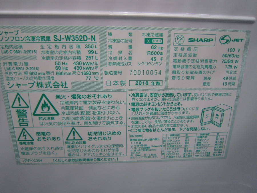 「SHARP(シャープ) 3ドア冷蔵庫 2018年製」入荷!!【大宮店】