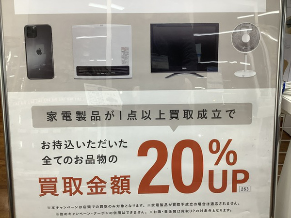 お持ちいただいたお品物が全て20%UPになります!