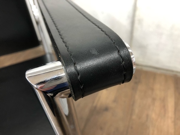 フレームはスチールパイプ、座面やアームは厚革を使用しています。