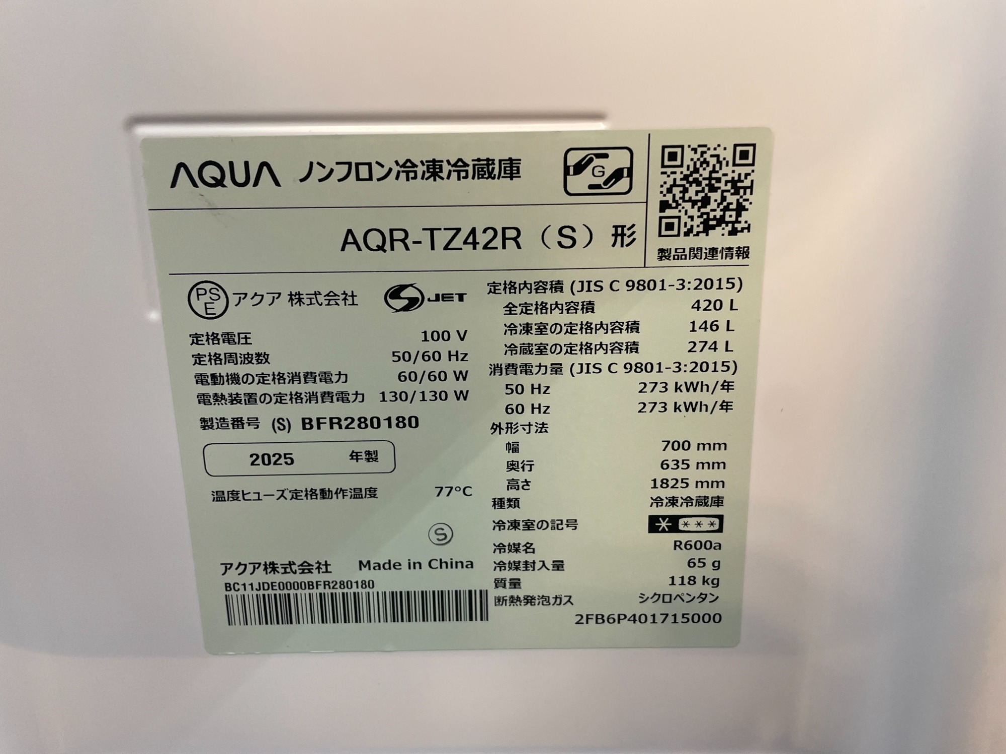 型番:AQR-TZ42R