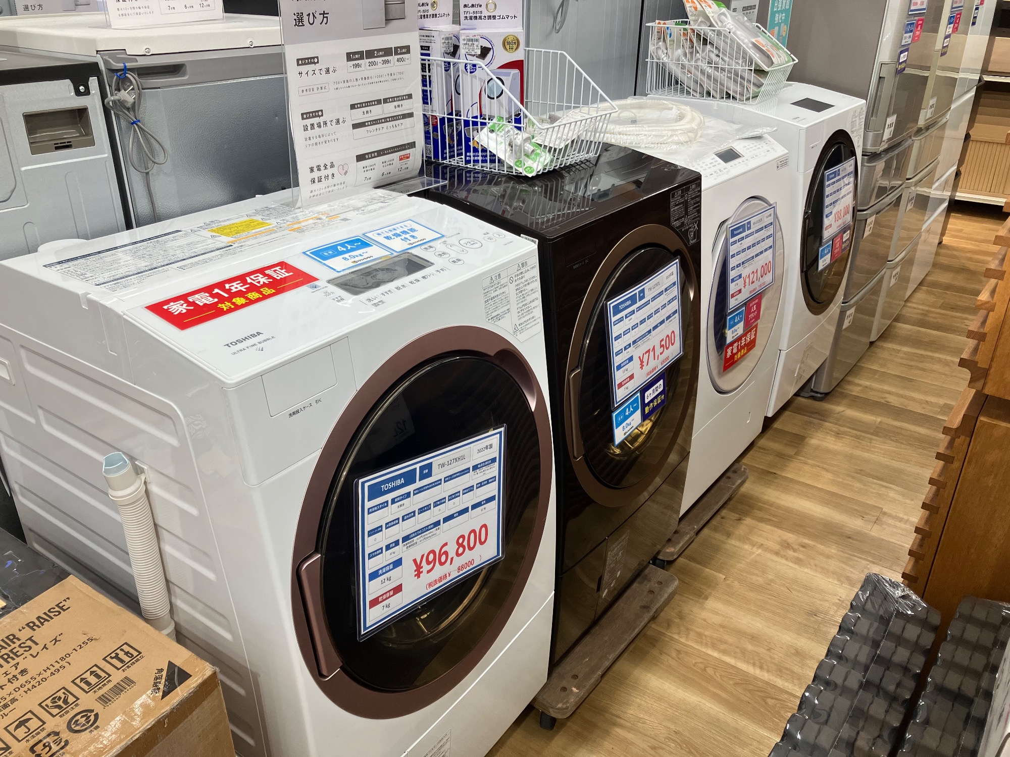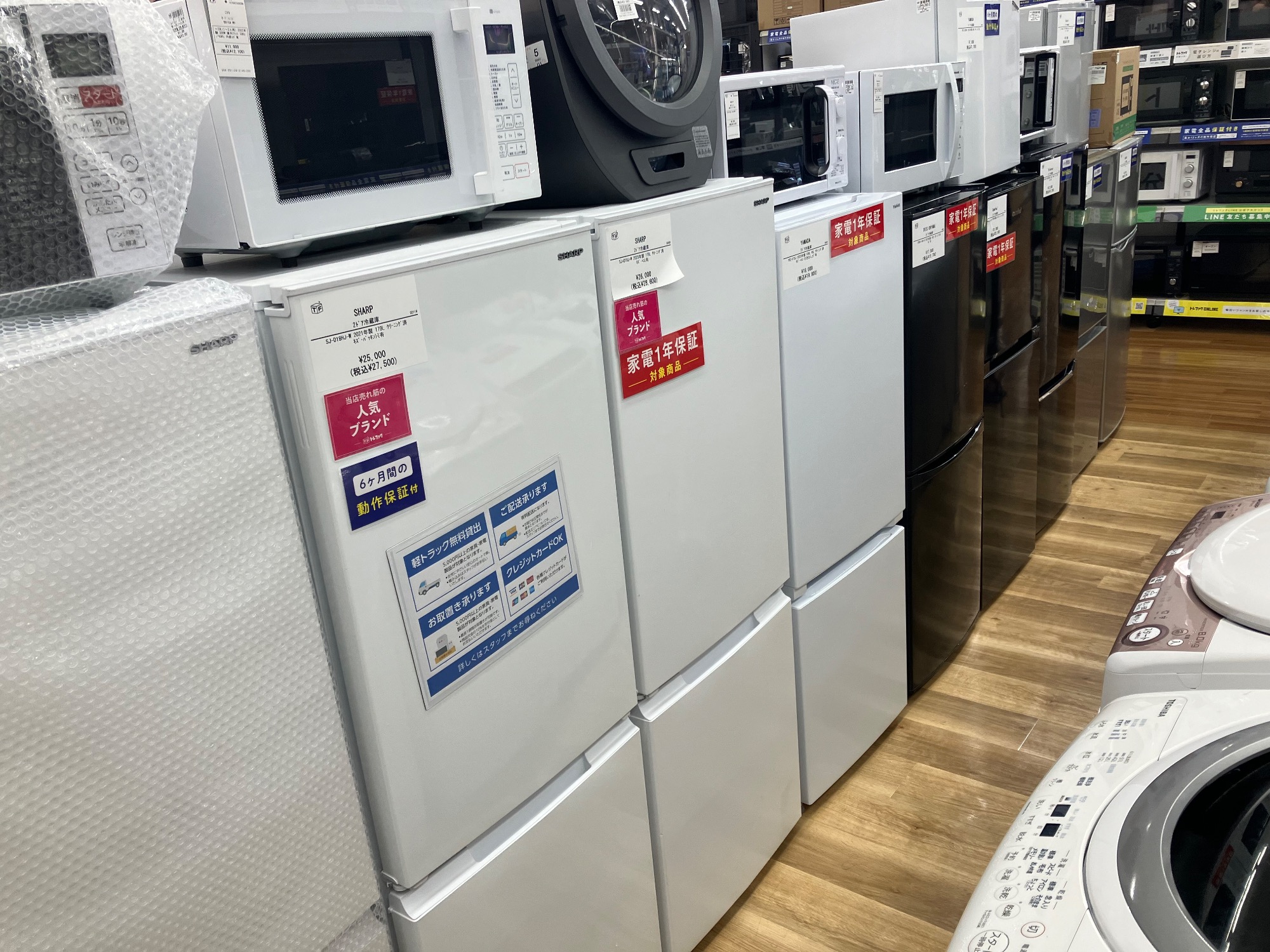 家電製品は最大で1年間の保証が付きます!