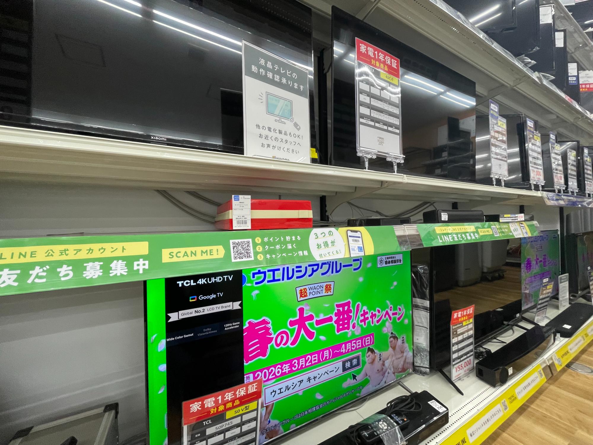 現在当店ではテレビ多数お取り扱い中です!!