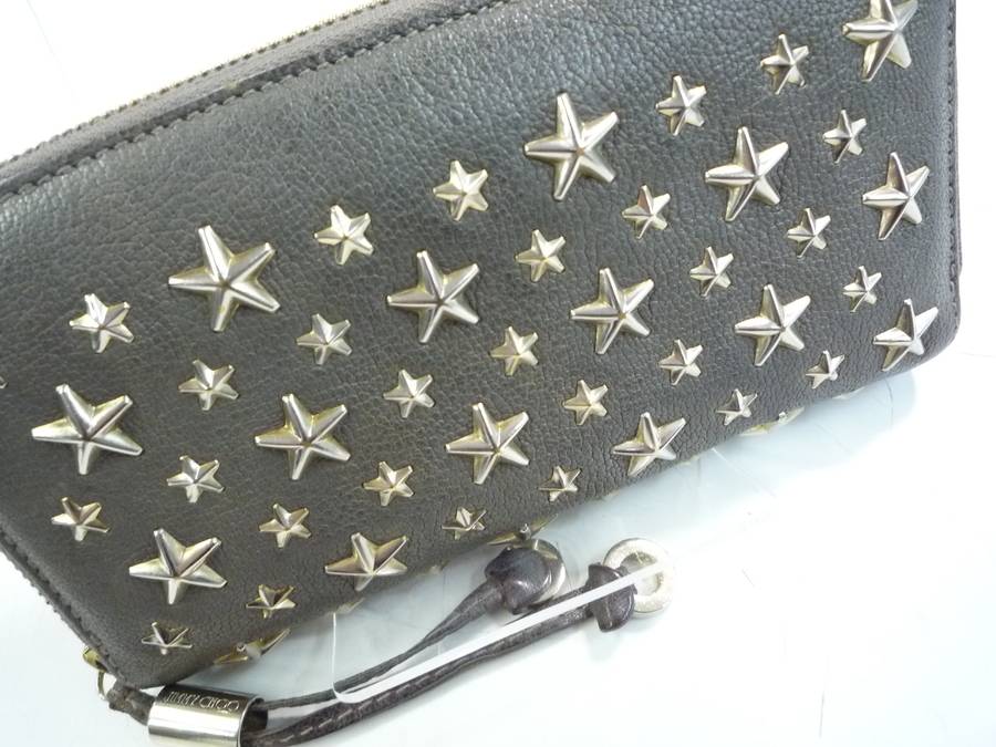 ジミーチュウの定番のスタースタッズのラウンドファスナー長財布。