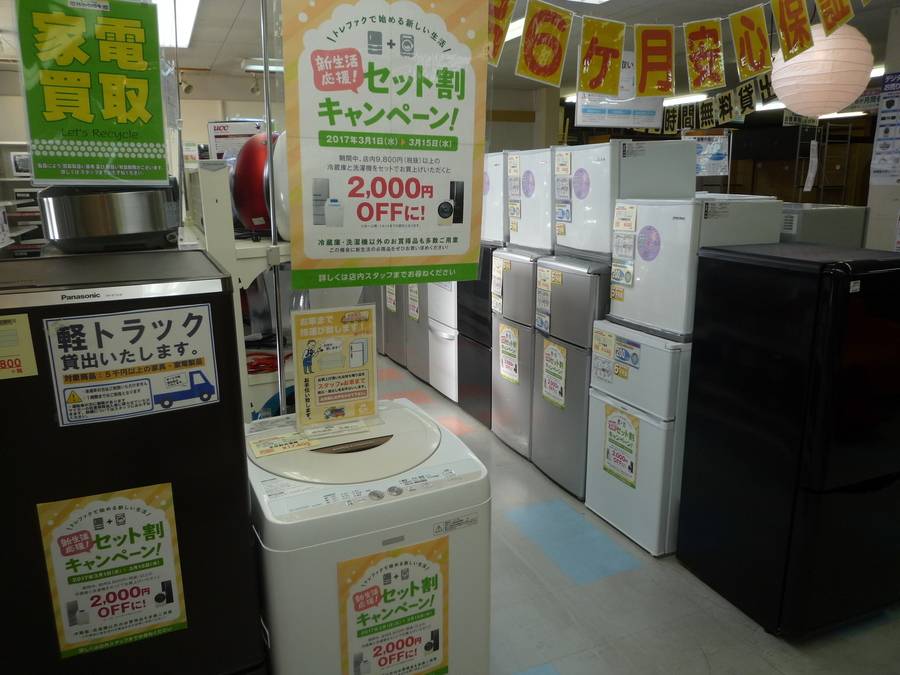 只今、新生活応援!冷蔵庫・洗濯機「セット割」キャンペーンを開催しております!