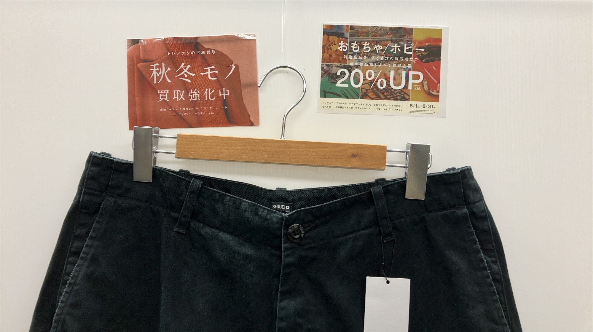 長袖シャツやカットソー、スウェットやライトアウターなどの秋物に加え、ダウンジャケットやコートなどのヘビーアウターの買取りが早くもスタートしました。