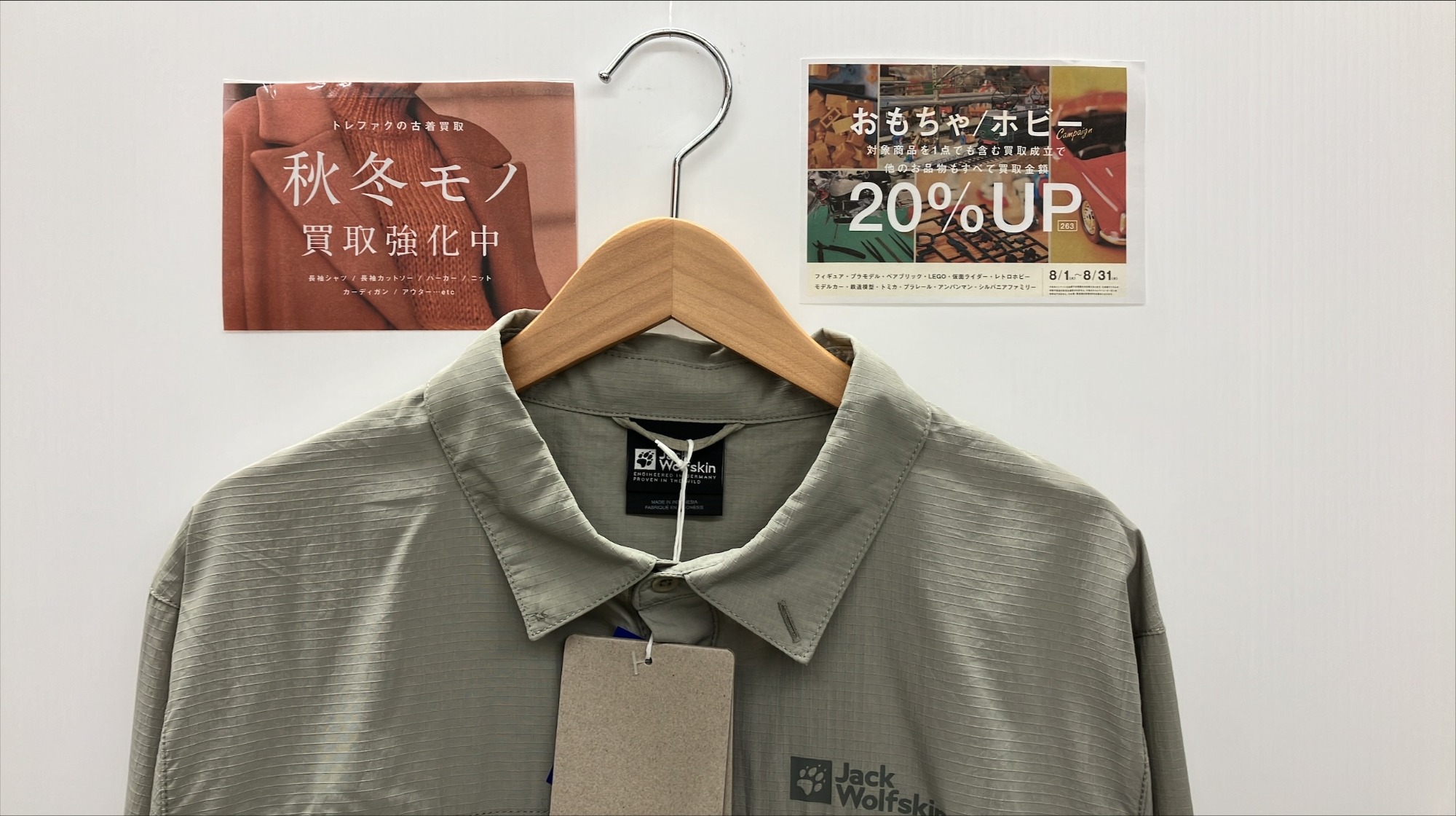 長袖シャツやカットソー、スウェットやライトアウターなどの秋物に加え、ダウンジャケットやコートなどのヘビーアウターの買取りが早くもスタートしました。