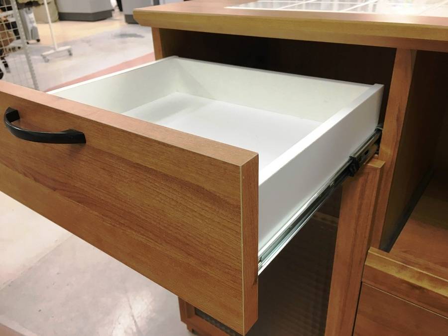 ※オープンレールの為、開けた時に引出しが転倒しないので安全面でも丈夫です。