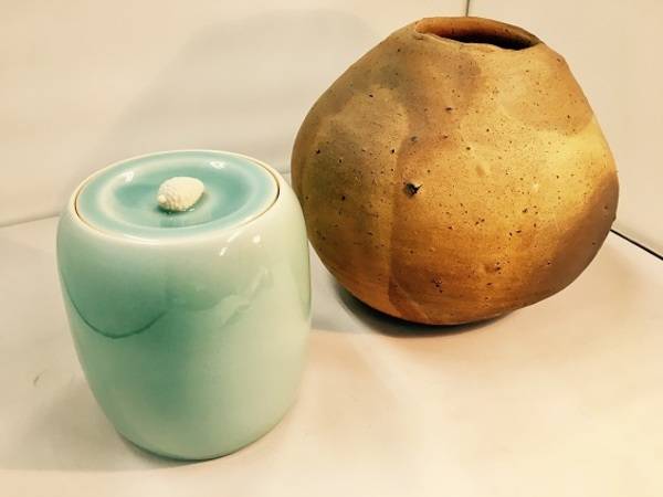 川淵直樹作 南蛮壷 & 小笠原長春作 青磁水指