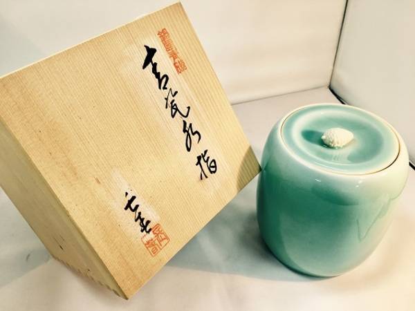 続きまして、小笠原長春作の青磁水指をご紹介。