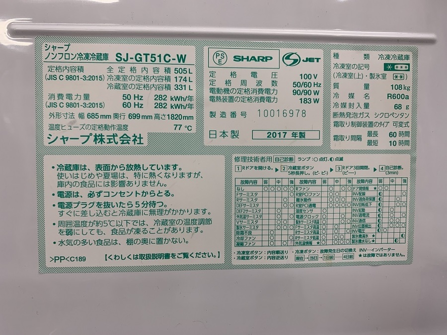 型番 SJ-GT51C-W