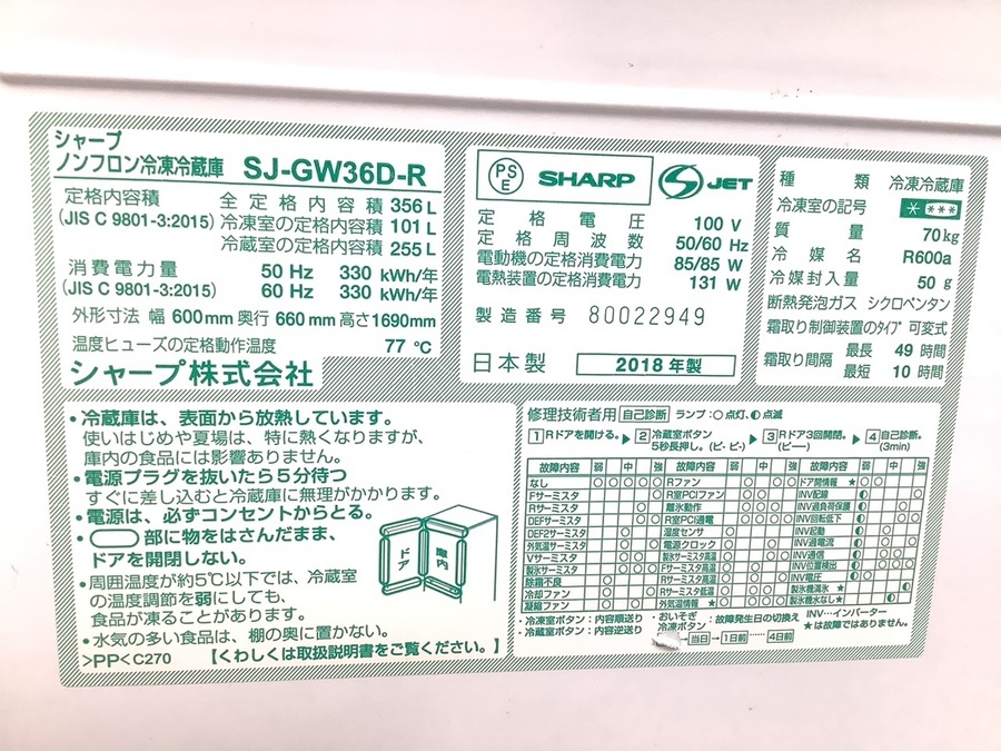 型番:SJ-GW36D