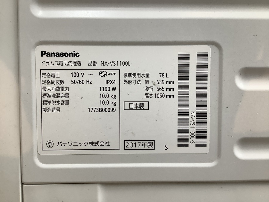Panasonic 10.0kg ドラム式洗濯機が入荷しました!!