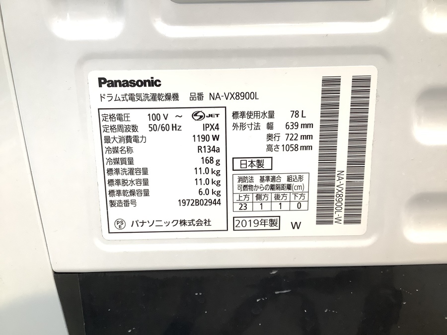 Panasonic(パナソニック)ドラム式洗濯乾燥機 NA-VX8900L 2019年製が買取入荷致しました!!