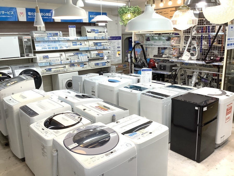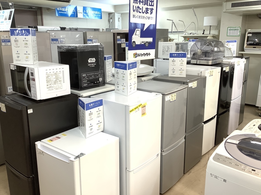 冷蔵庫は40台、洗濯機は30台、常時展示中です。