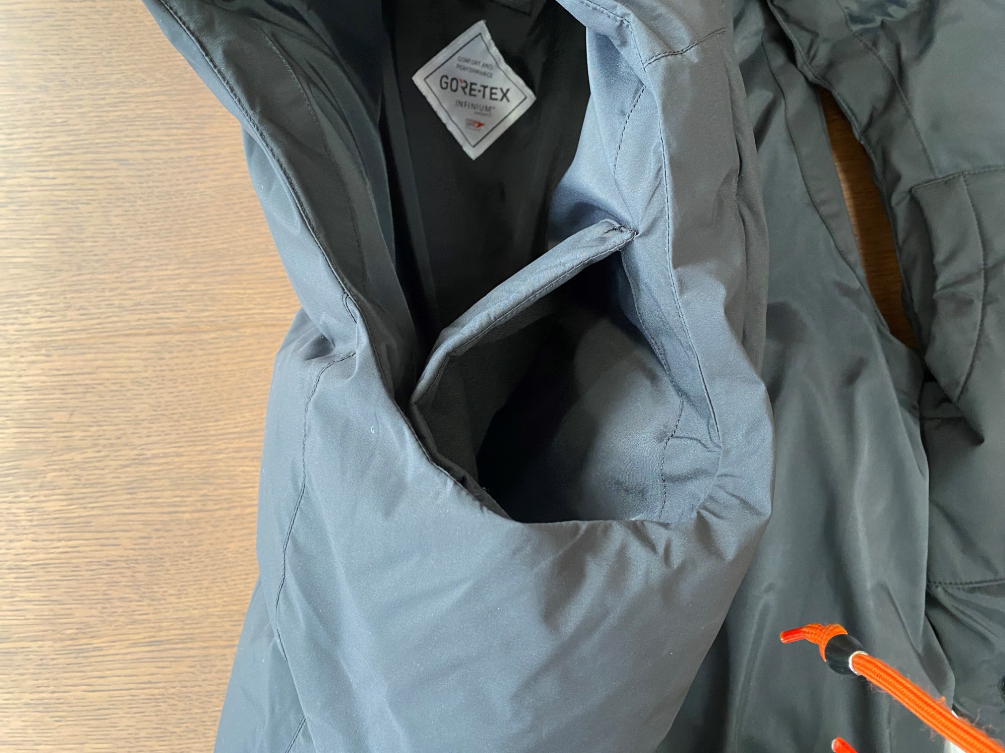 GORE TEX INFINIUMを採用しており、防風効果も高く水にも強い作りになっております。
