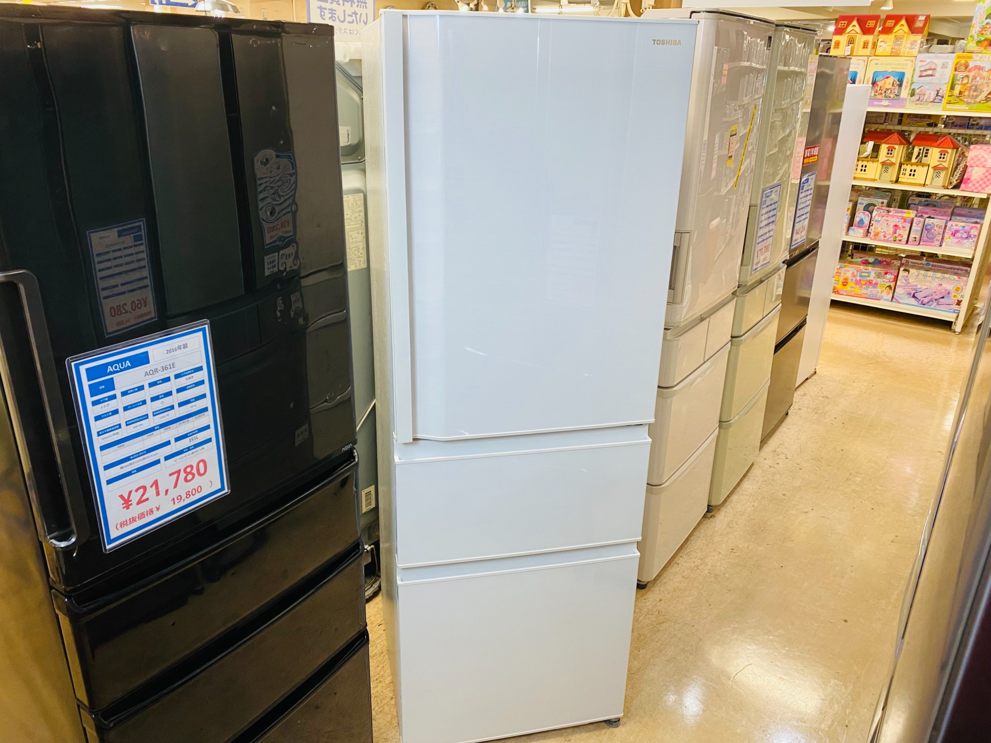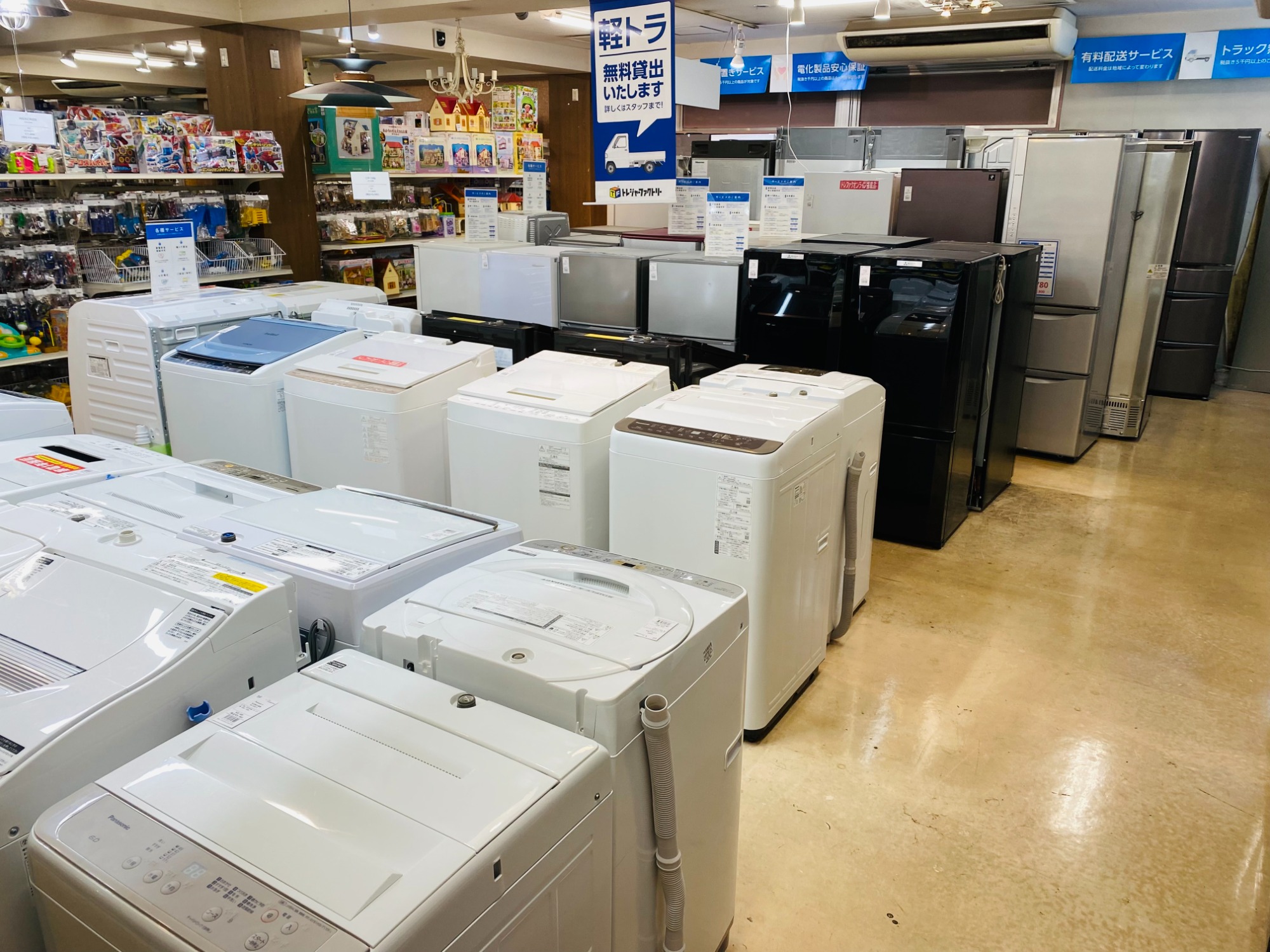 当店自慢の冷蔵庫・洗濯機コーナーは変わらずの大量展示継続中♪