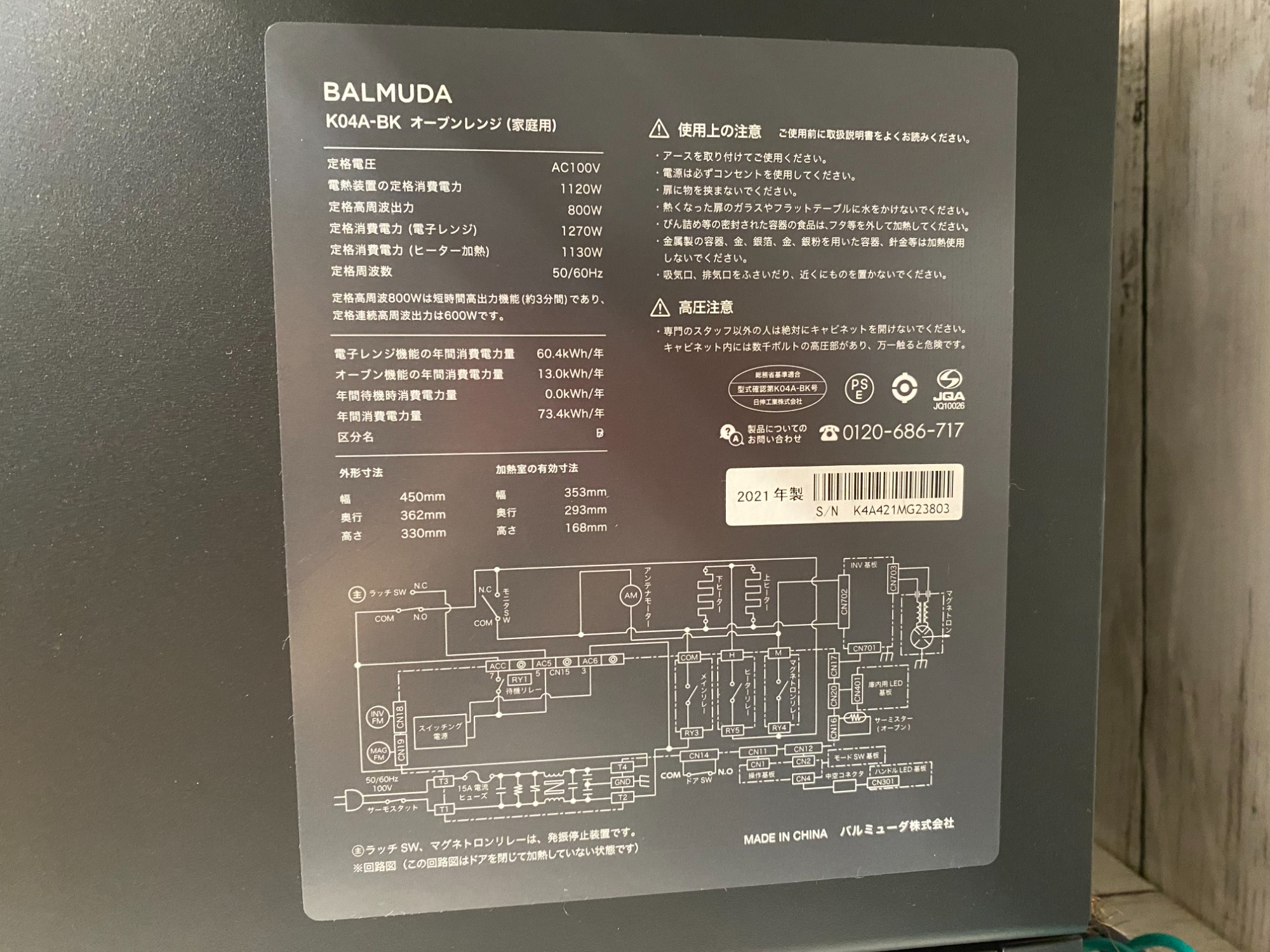 【BALMUDA(バルミューダ)オーブンレンジ K04A-BK】