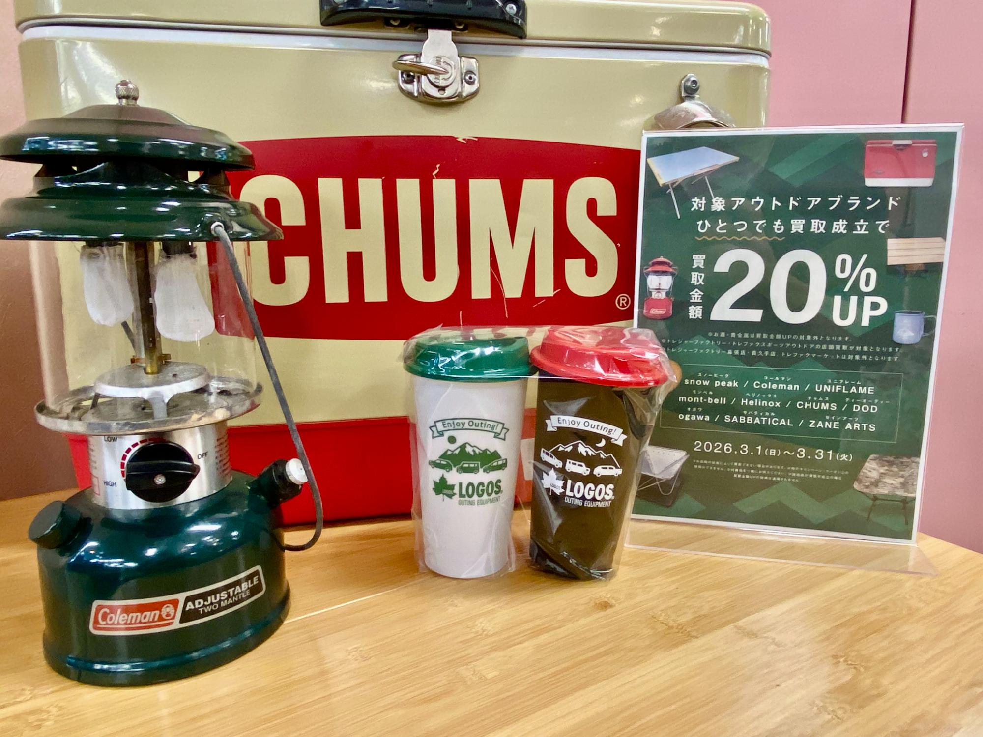 3月はアウトドアブランド20%UPキャンペーン!SONW PEAK・Coleman・mont-bell など、ぜひお持ち込みください!