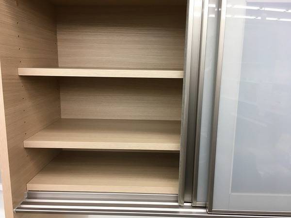 上部の扉はスモークになっており、食器をしまっても目立たないようになっています。