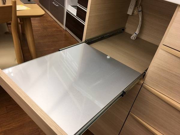 引き出しはサイレントレールを採用しています。そのため、勢いよく引き出しをしまった場合でも