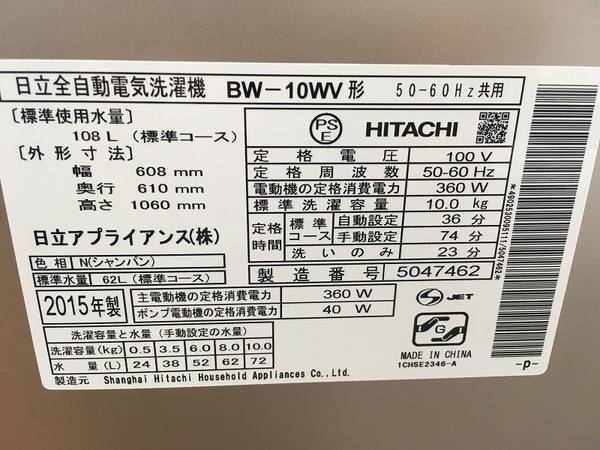 HITACHI(日立)の容量10kgの大型洗濯機が買取入荷いたしました!!【千葉みつわ台店】