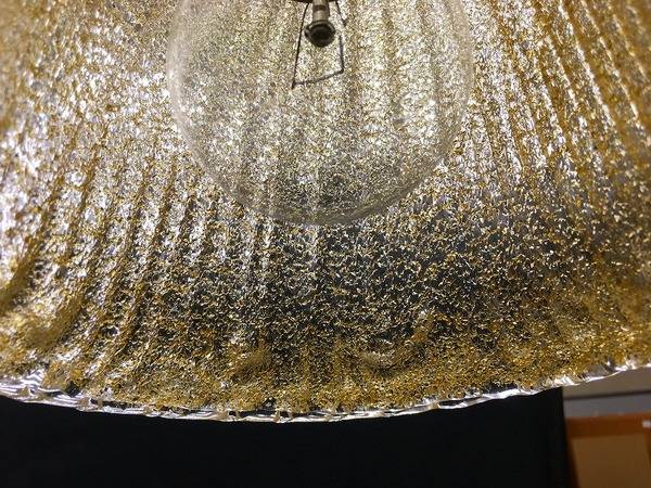 温かみのある光が照らすガラスには、内側にガラスの粒があしらわれた