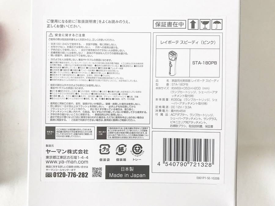 千葉みつわ台店 店舗TOP 店内紹介 新入荷ブログ 地図・アクセス スタッフ募集 千葉市にあるリサイクルショップ 千葉みつわ台店からの新入荷&買取情報です! 脱毛器 レイボーテ スピーディ YA-MAN STA-180PB が入荷しました!【千葉みつわ台店】 2018-09-07 #千葉家電 #脱毛器 #レイボーテ スピーディ #YA-MAN #ヤーマン こちら公開後3ヶ月以上の記事です。商品の売り切れなど情報が古い場合があります。 ・最新の掘り出し物入荷情報はこちら ・いま店頭で使えるクーポンはこちら ご覧いただきありがとうございます。トレジャーファクトリー千葉みつわ台店です。 本日のオススメ商品はこちら。脱毛器 レイボーテ スピーディ YA-MAN STA-180PB が入荷しました!商品情報:※取説欠品 未使用品当店販売価格 9,800円+税家電、強化中です!新しく購入して使わなくなった商品はお売りください!!