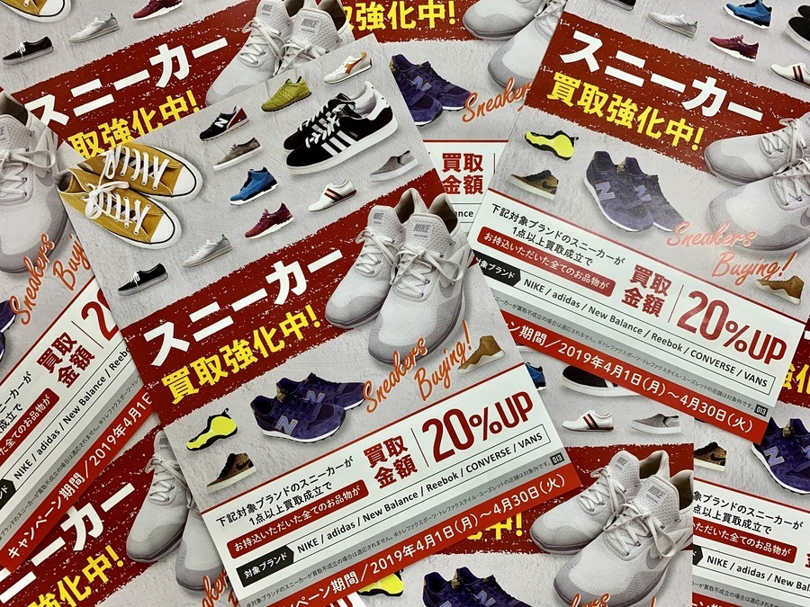 千葉みつわ台店 店舗TOP 店内紹介 新入荷ブログ 地図・アクセス スタッフ募集 千葉市にあるリサイクルショップ 千葉みつわ台店からの新入荷&買取情報です! スニーカー買取20%UPキャンペーン実施中!!【千葉みつわ台店】 2019-04-01 #メンズファッション #スニーカー #中古 #靴 #千葉 買取 中古 中古家具 みつわ台 若葉区 こちら公開後3ヶ月以上の記事です。商品の売り切れなど情報が古い場合があります。 ・最新の掘り出し物入荷情報はこちら ・いま店頭で使えるクーポンはこちら 4/1〜4/30までスニーカー買取キャンペーン実施中です!!対象のブランドのスニーカーが1点以上買取成立でお持込頂いた全てのお品物が買取金額20%UP!!!!対象ブランドはこちらの6ブランド!!NIKE・adidas・New Balance・Reebok・Converse・VANS是非お得なこの機会に買取をご利用ください!当店でもこれから活躍するスニーカーを多数取り揃えております!店頭にてお確かめください!