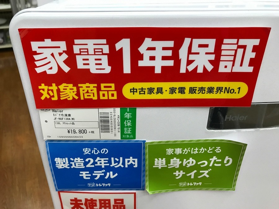 アウトレット品!1ドア冷凍庫 Haier(ハイアール) JF-NUF138A(W) 2018年製 138L 入荷致しました。 【千葉みつわ台店】