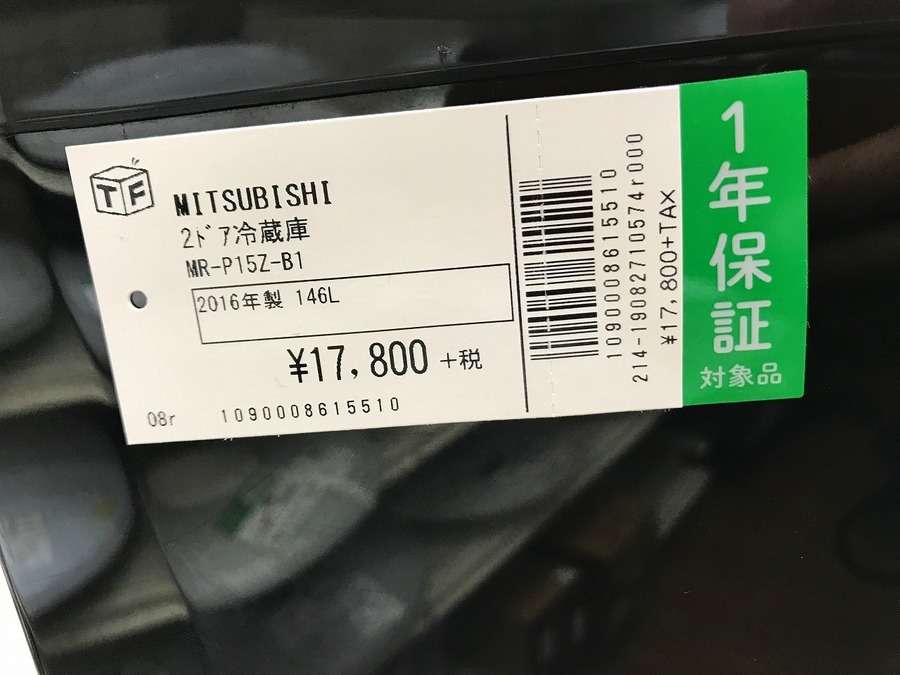 2ドア冷蔵庫 MITSUBISHI(ミツビシ) MR-P15Z-B1 2016年製 146L 入荷致しました。 【千葉みつわ台店】