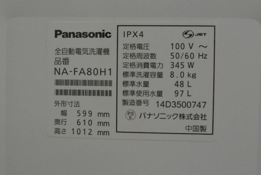 全自動洗濯機 Panasonic(パナソニック) NA-FA80H1 2014年製 8.0kg入荷致しました!【千葉みつわ台店】