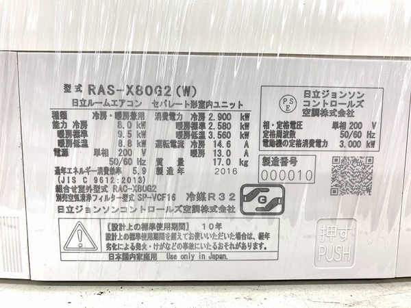 壁掛けエアコン HITACHI(日立) RAS-X80G2 2016年製 8.0kw入荷しました!【千葉みつわ台店】