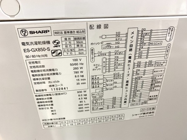 縦型洗濯乾燥機 SHARP(シャープ) 8.0kg 4.5kg ES-GX850-S 2015年製入荷致しました!【千葉みつわ台店】