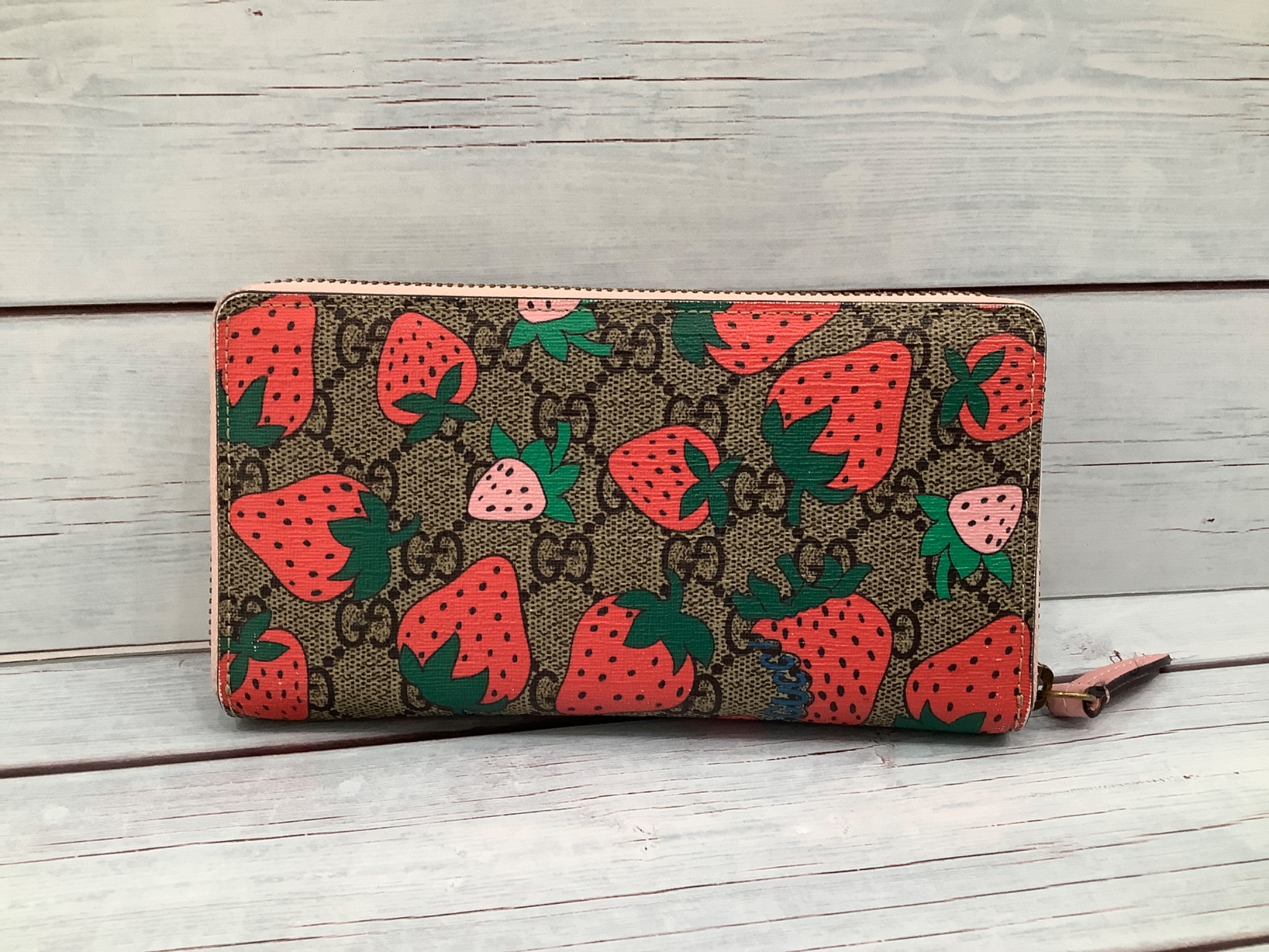 ストロベリー柄がポップで可愛いGUCCIのお財布になります。