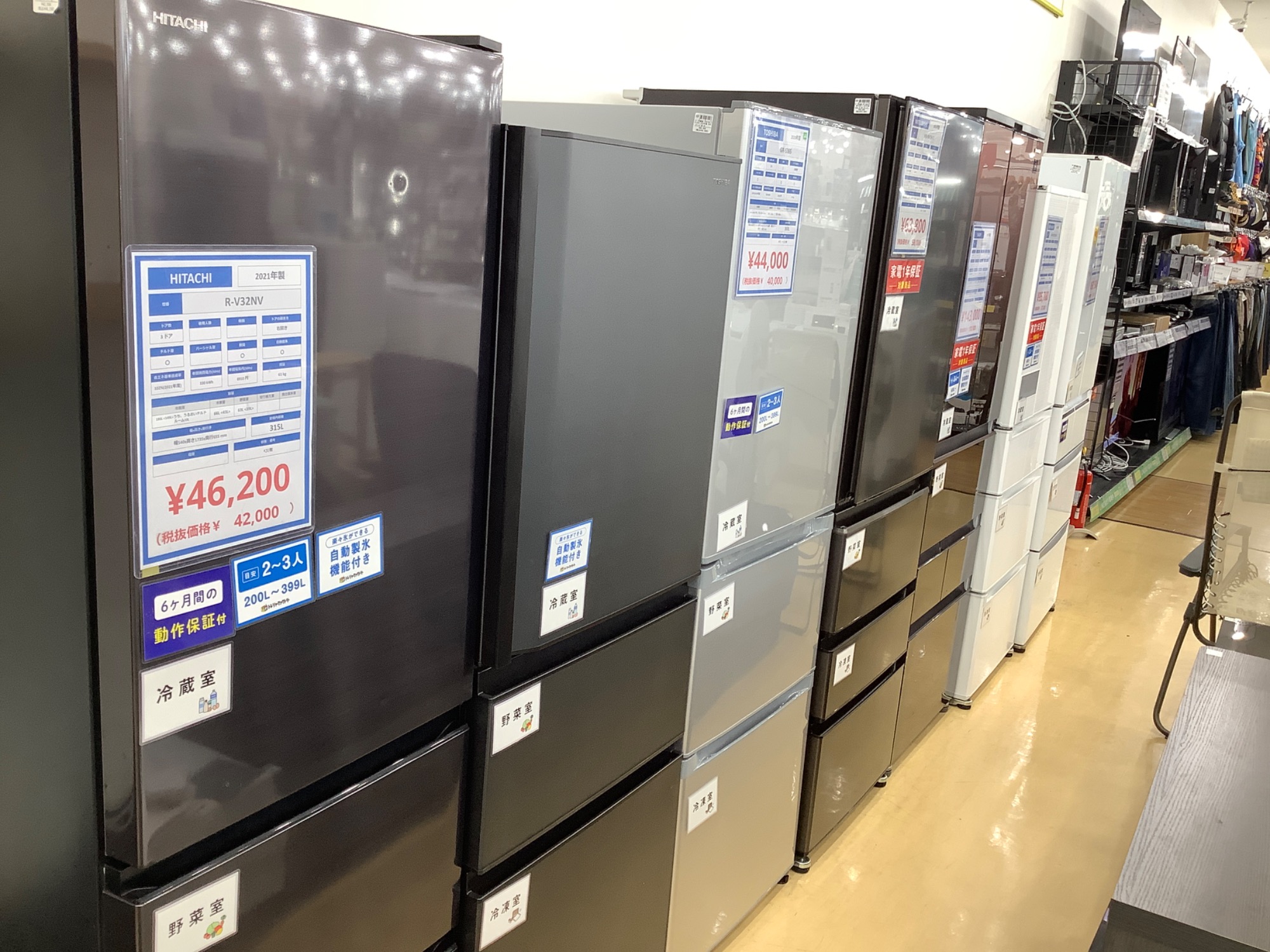 冷蔵庫、洗濯機展示台数50台以上!