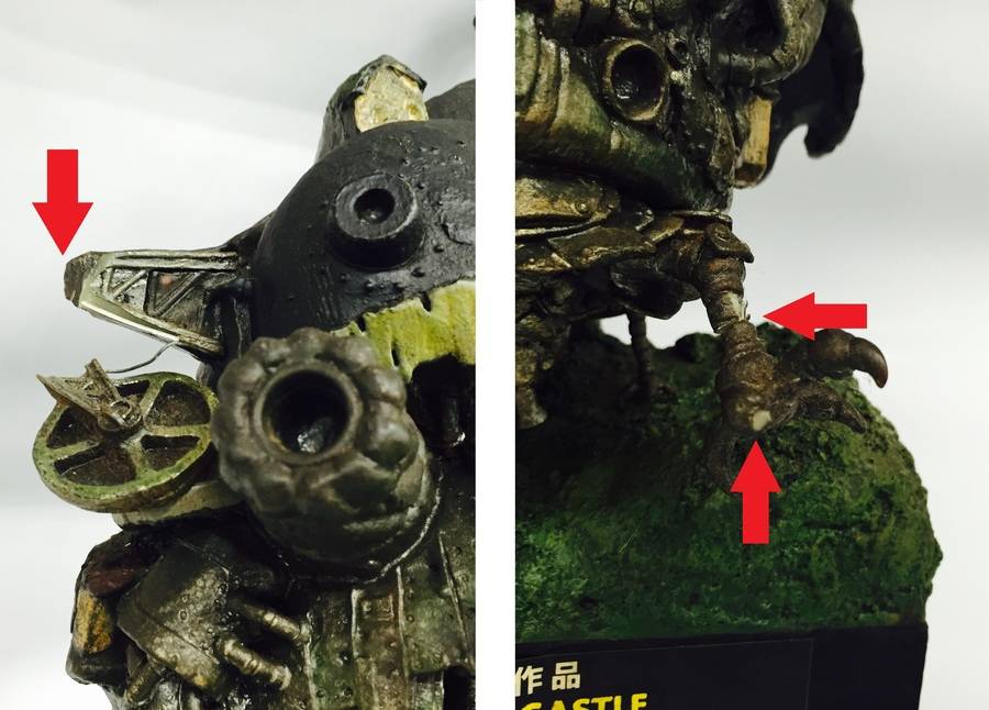 飾ってあった物の為、鉄骨部分、足首、爪の3ヶ所に折れや欠けがございます。