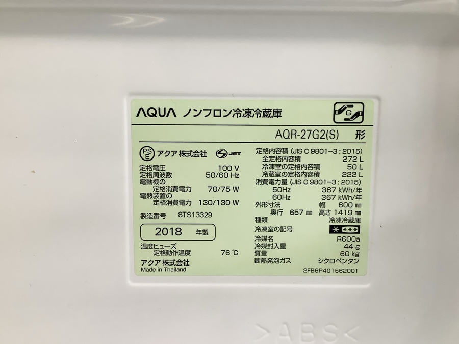 ■アイテム  :3ドア冷蔵庫 272L
