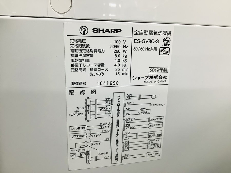 SHARP(シャープ)全自動洗濯機 ES-GV8C-S 2019年製入荷しました!【草加店】