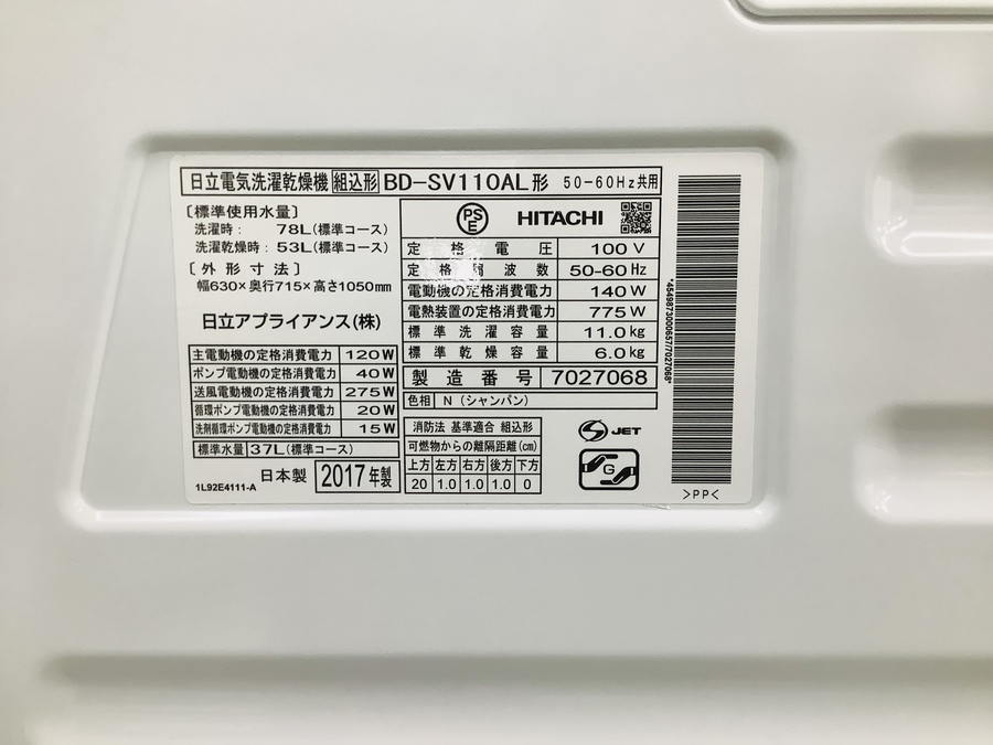 HITACHI(ヒタチ)ドラム式洗濯乾燥機BD-SV110AL入荷しました!【草加店】