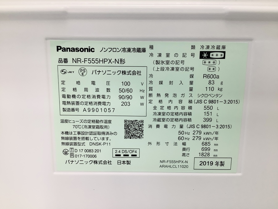 NR-F555HPX-N 2019年製