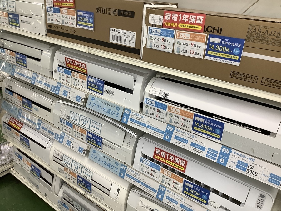 当店ではただいま、エアコンを大量展示中!