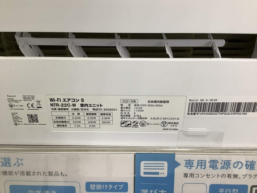 ニトリ エアコン NTR-22C-W 2021年製