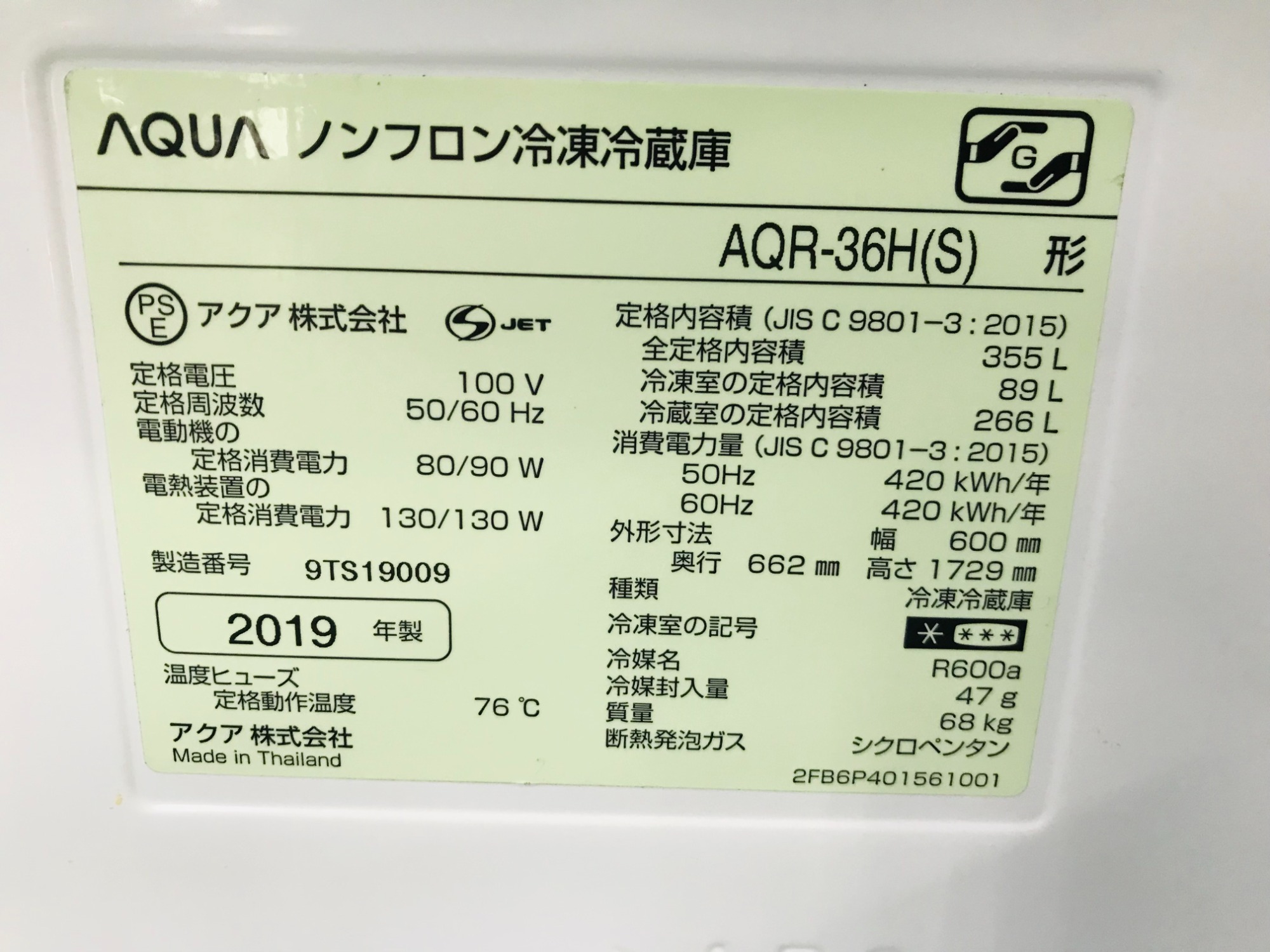 ・年数 :2019年製