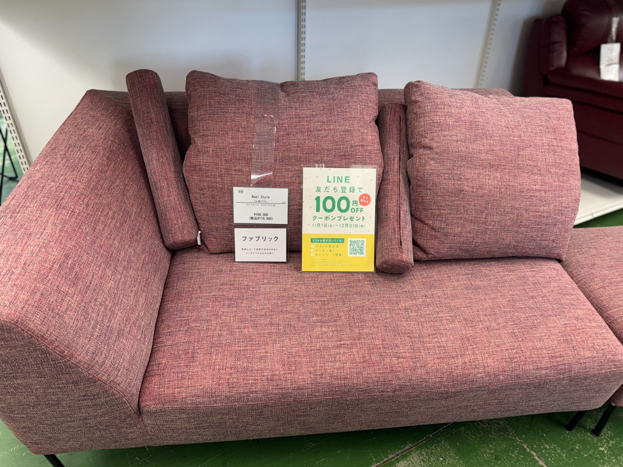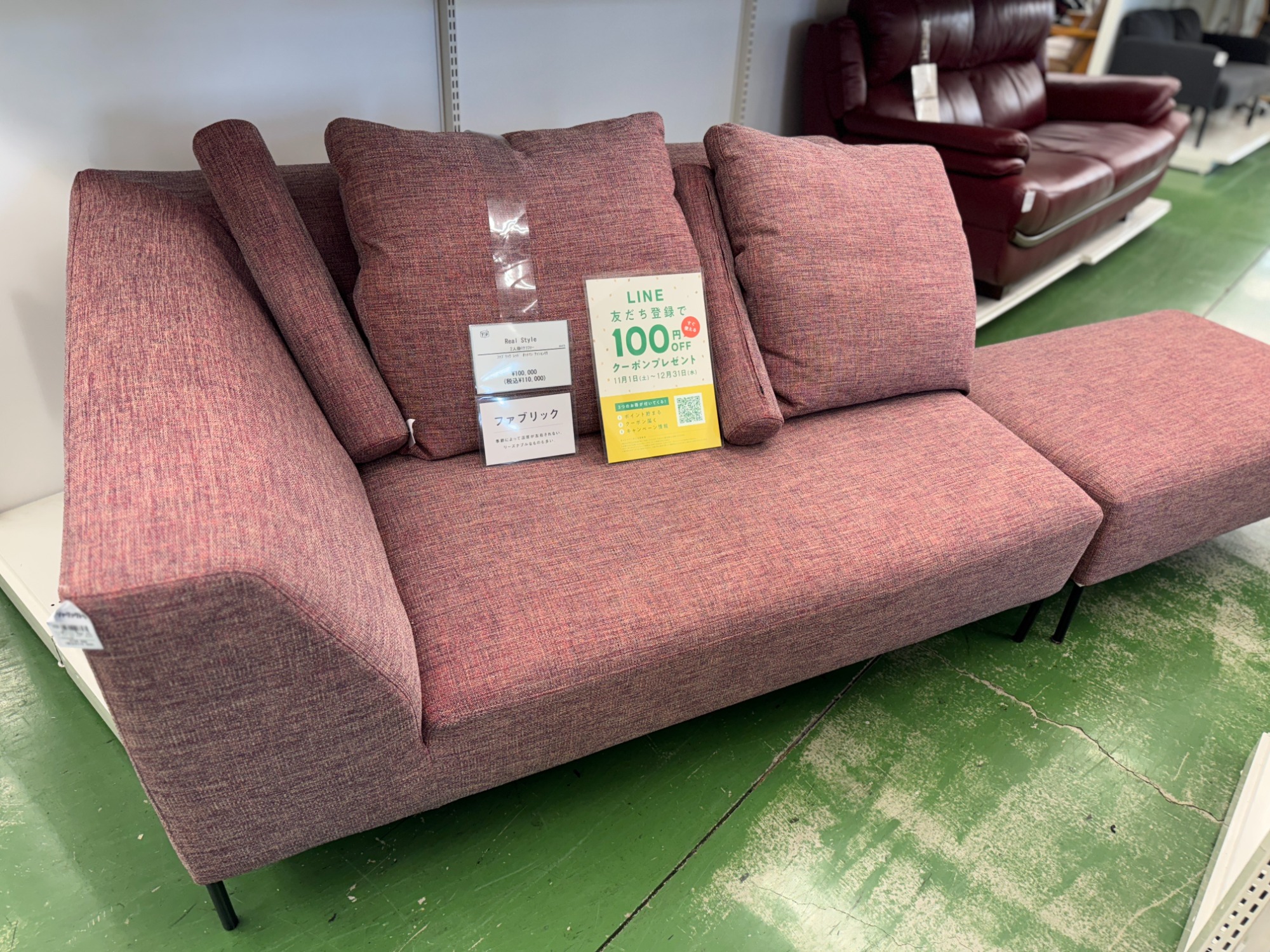 ・アイテム :2人掛けソファー ファブリック オットマン付・クッション付