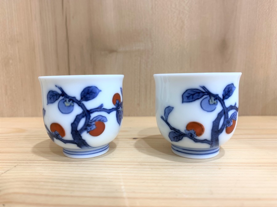 【インテリア/雑貨買取キャンペーン実施中!!】柿右衛門 染錦 柿文 ぐい呑み 2Pセット 買取入荷いたしました‼