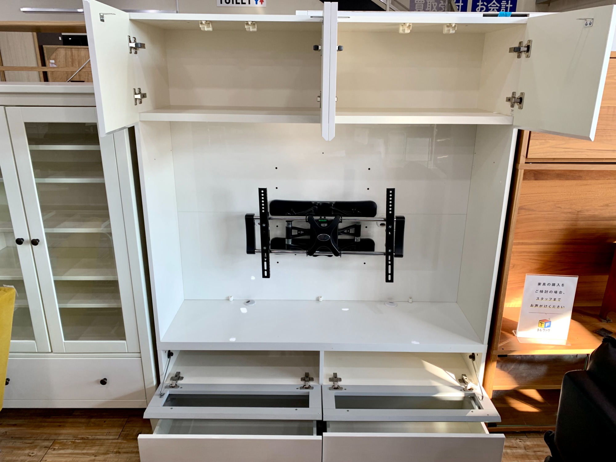 収納スペースも多く、シンプルなデザインでお部屋になじみやすいお品物でございます!!